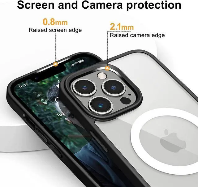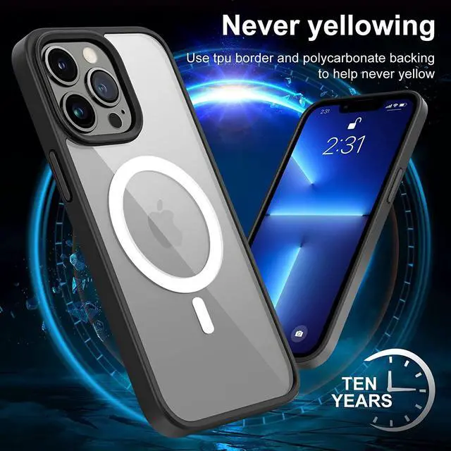 Features: Compatible with Apple iPhone 14 Pro Max. Designed to interact with Apple’ s MagSafe ecosystem. Built-in magnetic ring for strengthened MagSafe connections. Compatible with Apple MagSafe chargers and accessories so you can power up without removing the case. Protect your phone from scratches and knocks! Featuring a premium quality eco-friendly material that is sturdy enough to protect your device, yet flexible enough to easily attach or remove your phone from the case. Crystal clear transparency flaunts original phone design. Raised bezels lift screen and camera off flat surfaces. Truly clear. No milky hues like other cases. Protects your phone from dust, dirt, scratches and damages. Pronounced buttons with tactile feedback and added detailing. Precisely cutouts to preserve full use of volume buttons, charger, camera, microphone, and all other ports.