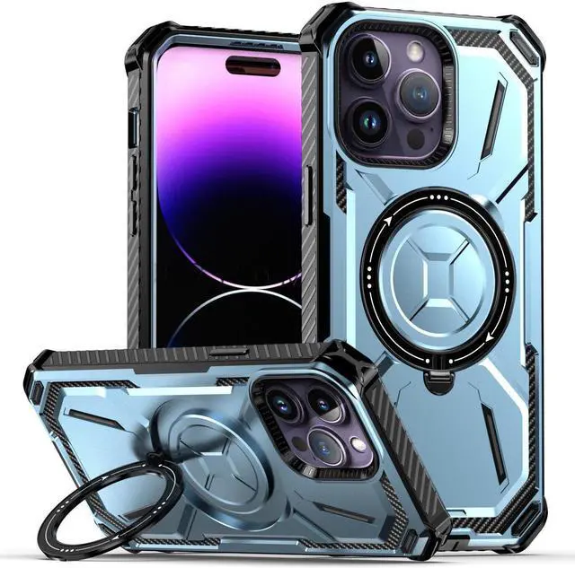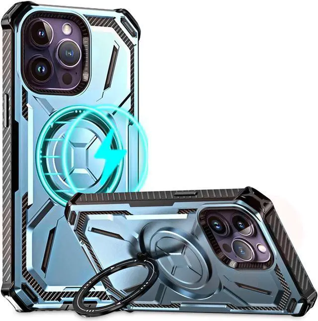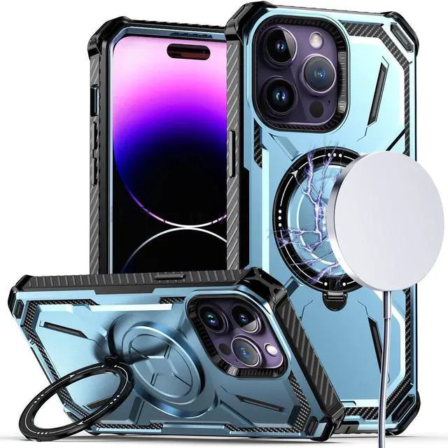 MagSafe Compatible Military Grade Hybrid Case with Kickstand Ring Holder for iPhone 14 - Blue