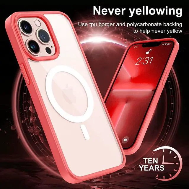 Features: Compatible with Apple iPhone 14. Designed to interact with Apple’ s MagSafe ecosystem. Built-in magnetic ring for strengthened MagSafe connections. Compatible with Apple MagSafe chargers and accessories so you can power up without removing the case. Protect your phone from scratches and knocks! Featuring a premium quality eco-friendly material that is sturdy enough to protect your device, yet flexible enough to easily attach or remove your phone from the case. Crystal clear transparency flaunts original phone design. Raised bezels lift screen and camera off flat surfaces. Truly clear. No milky hues like other cases. Protects your phone from dust, dirt, scratches and damages. Pronounced buttons with tactile feedback and added detailing. Precisely cutouts to preserve full use of volume buttons, charger, camera, microphone, and all other ports.