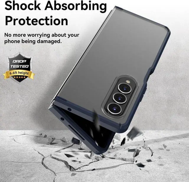 Features: Compatible with Samsung Galaxy Z Fold 4 5G. Sleek profile and precision design keep case securely attached and out of the way. Integrated screen protector for the outside screen prevents scratches without compromising sensitivity. Featuring a streamlined dual material construction design that delivers tough protection from drops and shocks. Premium dual-material construction with frosted matte transparent polycarbonate backing and TPU perimeter creates a sleek profile without sacrificing protection. A silky-smooth surface feels great and resists fingerprints. Raised bezels lift screen and camera off flat surfaces. Antimicrobial case protection. The simple and easy installation allows the cover to be attached in no time. simply clip onto the top half and bottom half of the phone individually and away you go. Features cut-outs for the ports and features including the charging connector and camera. Supports wireless charging with most Qi-certified devices.