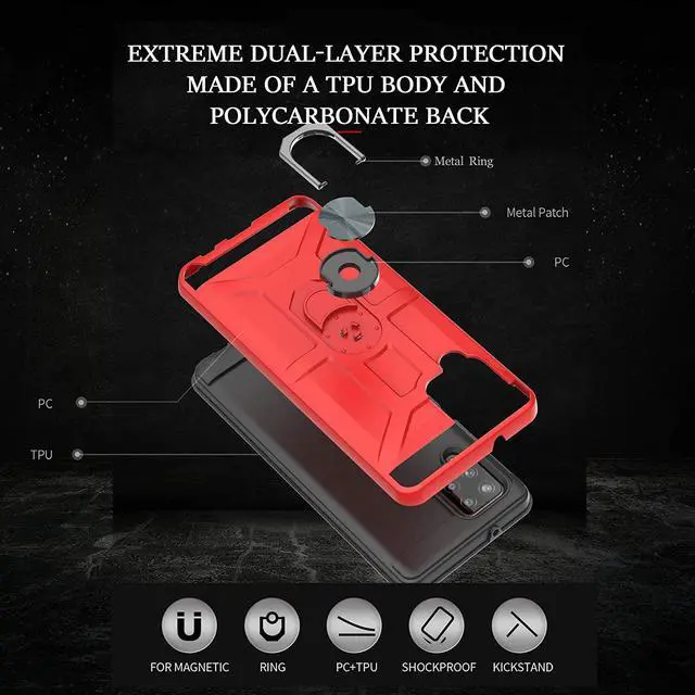 Material: Polycarbonate + TPU + Metal. Compatible with Samsung Galaxy A42 5G.