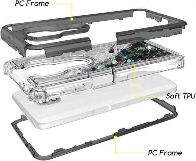 Features: With your phone sealed in, the Atomic Case equips your phone with some of the toughest protection around. Shake me, flip me, turn me and let the dynamic waterfall effect of this case captivate you with its cascading sparkle and tumbling glitter. Enhance the gorgeous aesthetic of your new smartphone with this shimmering, elegant and eye-catching case. Mesmerizing floating glitter mix with colorful iridescent specks in clear liquid case. Quicksand glitters gracefully fall as you move your phone. The glitter containing compartment is filled with a certified and totally safe mineral oil, so you can expect no nasty surprises. Battling shocks, scrapes, drops and scratches, the Atomic Case is truly ready for an adventure, making it the perfect case for any outdoor enthusiast and for those who want to safe-guard their precious smartphone from the rigors and strains of day-to-day life. Crafted from anti-scratch TPU and polycarbonate frame, the Atomic Case protects your device whilst complimenting its sleek aesthetics. This case comes complete with advanced shock and drop protection corner edges, dispersing any shock evenly throughout its structure - drops no longer need to be the end of the world.
