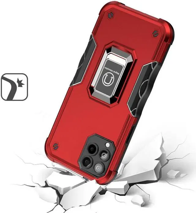 to withstands 4X MIL-STD (810G- 516.6 ), meaning the cases have been dropped at 2 meters with zero damage done to the device. Featuring a robust multi-layered design, the case provides extreme protection for your device. This hard-wearing tough case safe-guards your phone against whatever life can throw at, keeping it secure at all times even in the most extreme of conditions. A soft rubberized TPU inner core tightly grips to your phone while absorbs shock and cushions the phone from drops and impact. Patented hybrid case with ridge polycarbonate hard shell for armor-like protection. Reinforced air cushion corners provide excellent protection where it's most needed. The back of the case has a built-in extremely practical handle, Ring, which can be put on the finger to hold the phone more securely in your hand. It also allows you to attach the phone to a magnetic car holder. Pull the ring out and have a handy viewing stand to comfortably watch your favorite show. Raised front bezel and camera opening prevent scratches to the screen and camera lens. Integrated camera lens bumper protector protects the lens from accidental drops.
