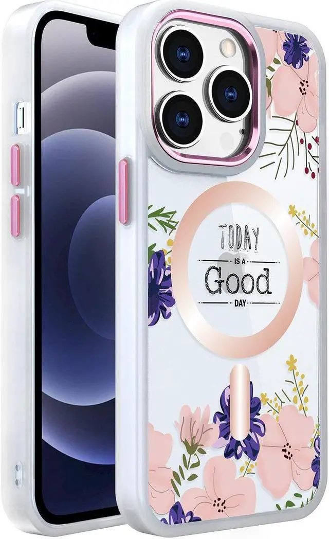 Features: Compatible with Apple iPhone 14 Pro. Designed to interact with Apple’ s MagSafe ecosystem. Built-in magnetic ring for strengthened MagSafe connections. Compatible with Apple MagSafe chargers and accessories so you can power up without removing the case. Inspirational floral illustrations. The minimalist design of this case gives you everything you need, from a slim profile to its incredible drop protection - plus it’ s a total beauty. One-piece platform design with soft rubber and hard polycarbonate. Reinforced corners provide excellent drop protection. Soft rubber bumper for enhanced grip and scratch protection. Transparent hard-shell polycarbonate backing lets the color of your phone shine through. Antimicrobial case protection. Raised camera cut-out protects the lens from scratches when placing your phone on flat surface. Access to all features, functions and connections.