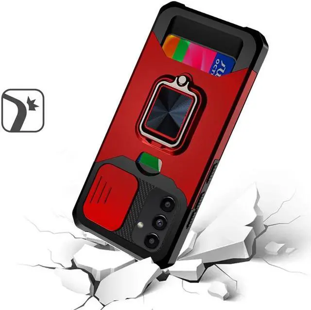 Made for the Samsung Galaxy A14 5G, the Military Grade All-In-One Ring Stand Card Case provides fantastic all-around protection and a finger loop to keep your phone in your hand, whether from accidental drops or attempted theft. Also featuring storage slot for your credit cards, ID and cash.