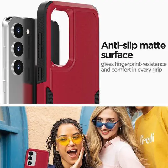 Features: Compatible with Samsung Galaxy S23 5G. Military Standard Shock Test MIL-STD 810G- 516.6 Protection. The case endured 26 drops (at 48in) on all 6 faces, 12 edges and 8 corners of the device and sustained zero damage to the appearance and internal hardware of the phone itself. Featuring a robust multi-layered design, the Tuff Case provides extreme protection for your device. This hard-wearing tough case safe-guards your phone against whatever life can throw at, keeping it secure at all times even in the most extreme of conditions. A soft rubberized TPU inner core tightly grips to your phone while absorbs shock and cushions the phone from drops and impact. Patented hybrid case with ridge polycarbonate hard shell for armor-like protection. Raised front bezel and camera opening prevent scratches to the screen and camera lens. Textured rubbery interior for impact resistant protection. Intuitive button covers for a tactile experience. Precise cutouts provide full access to your phone’ s important features, ports and buttons.