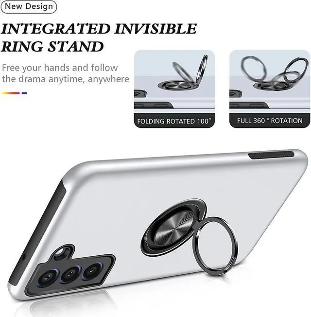 Features: Compatible with Samsung Galaxy S23 5G. Extensively drop tested, so you can feel reassured that your device is well protected. Made from reinforced bonded thermopolyurethane and high quality polycarbonate materials, which makes it flexible enough to absorb punishment but hard enough to resist potential damage. 360° rotating ring grip. Horizontal kickstand. Ultra-slim, lightweight and minimal design. Equipped with two-piece design, you can easily pop the case on and off with ease while still feeling ultimately protected. Get maximum safety and easy access to all buttons and ports from raised bezel edges, shock-absorbing corners, and a non-slip bumper grip. Enjoy magnetic mount compatibility, as the ring holder also functions as a built-in metal plate.