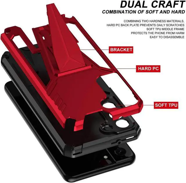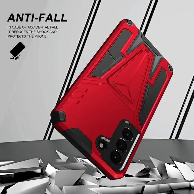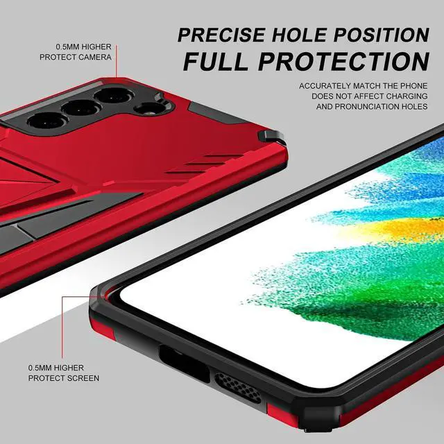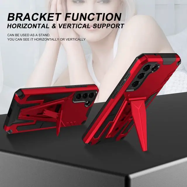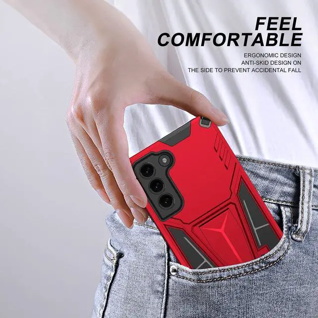 Features: Compatible with Samsung Galaxy S23 5G. Military Standard Shock Test MIL-STD 810G- 516.6 Protection. The case endured 26 drops (at 48in) on all 6 faces, 12 edges and 8 corners of the device and sustained zero damage to the appearance and internal hardware of the phone itself. Rugged composite case. Hybrid dual layered case protects from bumps, scrapes and drops. Reinforced corners are designed to deflect shock force away from your phone. Features an impact-resistant polycarbonate shell. Scratch resistant screen surround bezel. Made from a strong, durable lightweight material for long lasting protection. Textured fitting design adds no extra bulk and fits perfectly in your pocket. Located at the back of the case is a super-convenient flip-out kickstand. Folding completely flat when not in use, the kickstand can be called upon at will, allowing you to effortlessly watch media at any time and in any place. Integrated camera lens bumper protector protects the lens from accidental drops. Enjoy magnetic mount compatibility, as the kickstand also functions as a built-in metal plate. Cut-outs for the main ports and features of the phone; use your device with ease.