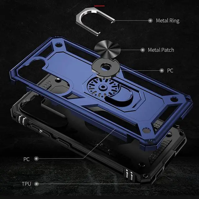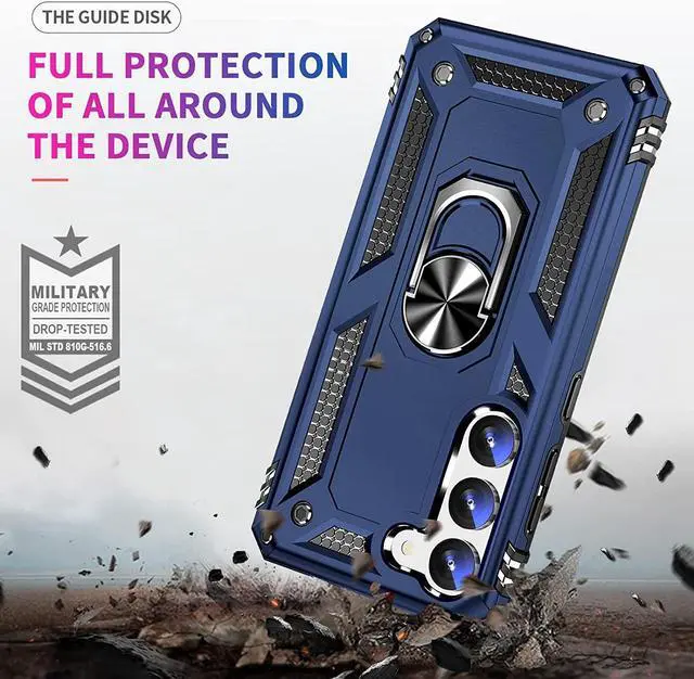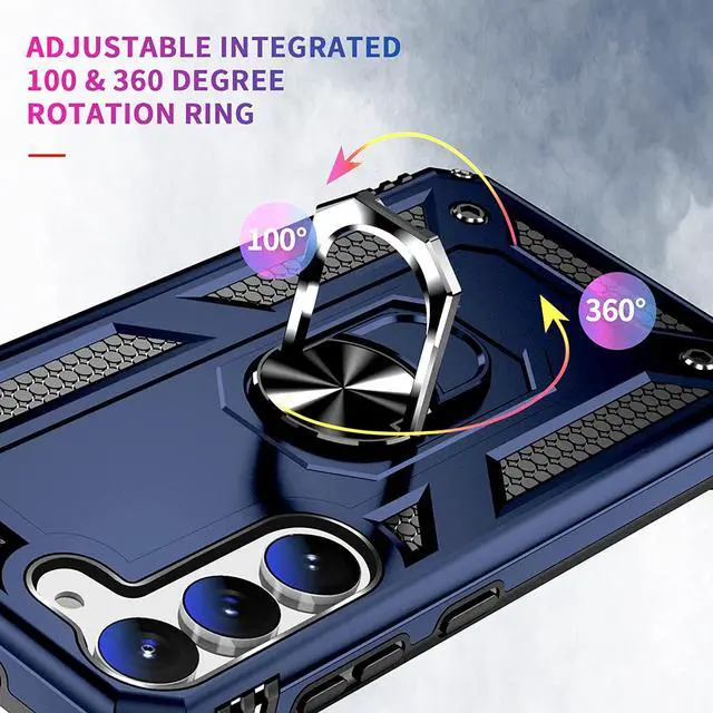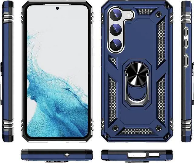 Features: Compatible with Samsung Galaxy S23 5G. Military Standard Shock Test MIL-STD 810G- 516.6 Protection. The case endured 26 drops (at 48in) on all 6 faces, 12 edges and 8 corners of the device and sustained zero damage to the appearance and internal hardware of the phone itself. Made from a special strong and lightweight durable material, providing you with long lasting protection for your smartphone without making it cumbersome. Ring holder for extra drop protection - in more ways than one. The built-it ring features a 180 & 360 degree rotating design to ensure a comfortable grip at any angle. Flip the ring out and it doubles as a kickstand to take your binge-watching experience to the next level. Unique mix material hybrid design.