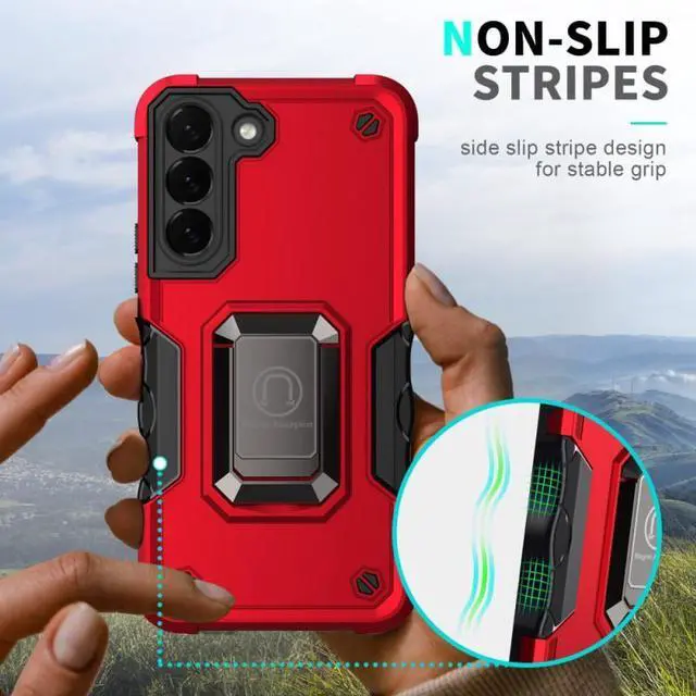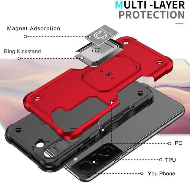 to withstands 4X MIL-STD (810G- 516.6 ), meaning the cases have been dropped at 2 meters with zero damage done to the device. Featuring a robust multi-layered design, the case provides extreme protection for your device. This hard-wearing tough case safe-guards your phone against whatever life can throw at, keeping it secure at all times even in the most extreme of conditions. A soft rubberized TPU inner core tightly grips to your phone while absorbs shock and cushions the phone from drops and impact. Patented hybrid case with ridge polycarbonate hard shell for armor-like protection. Reinforced air cushion corners provide excellent protection where it's most needed. The back of the case has a built-in extremely practical handle, Ring, which can be put on the finger to hold the phone more securely in your hand. It also allows you to attach the phone to a magnetic car holder. Pull the ring out and have a handy viewing stand to comfortably watch your favorite show. Raised front bezel and camera opening prevent scratches to the screen and camera lens. Integrated camera lens bumper protector protects the lens from accidental drops.
