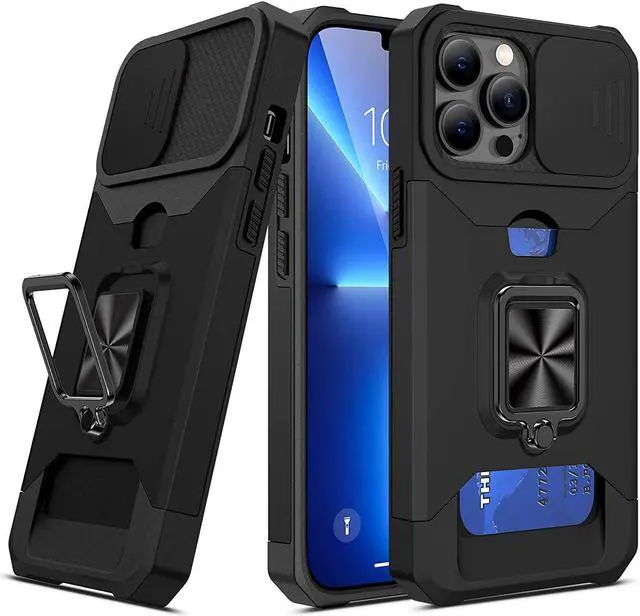 Made for the Apple iPhone 13 Pro Max, the Military Grade All-In-One Ring Stand Card Case provides fantastic all-around protection and a finger loop to keep your phone in your hand, whether from accidental drops or attempted theft. Also featuring storage slot for your credit cards, ID and cash.