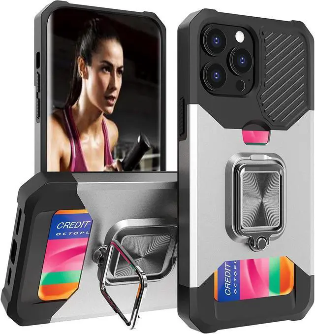 Made for the Apple iPhone 13 Pro Max, the Military Grade All-In-One Ring Stand Card Case provides fantastic all-around protection and a finger loop to keep your phone in your hand, whether from accidental drops or attempted theft. Also featuring storage slot for your credit cards, ID and cash.