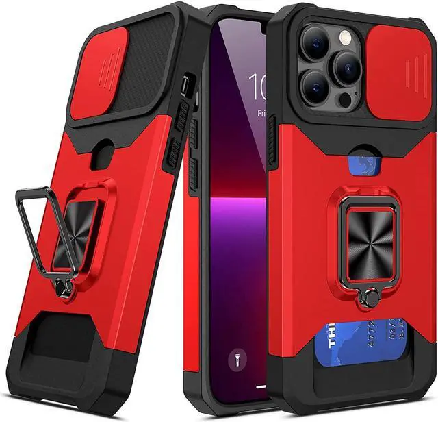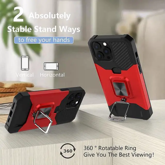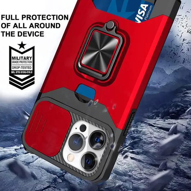 Made for the Apple iPhone 13 Pro Max, the Military Grade All-In-One Ring Stand Card Case provides fantastic all-around protection and a finger loop to keep your phone in your hand, whether from accidental drops or attempted theft. Also featuring storage slot for your credit cards, ID and cash.