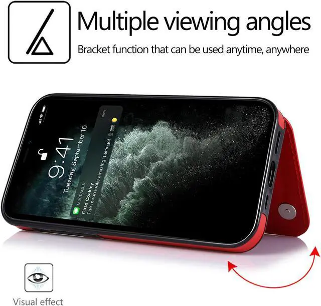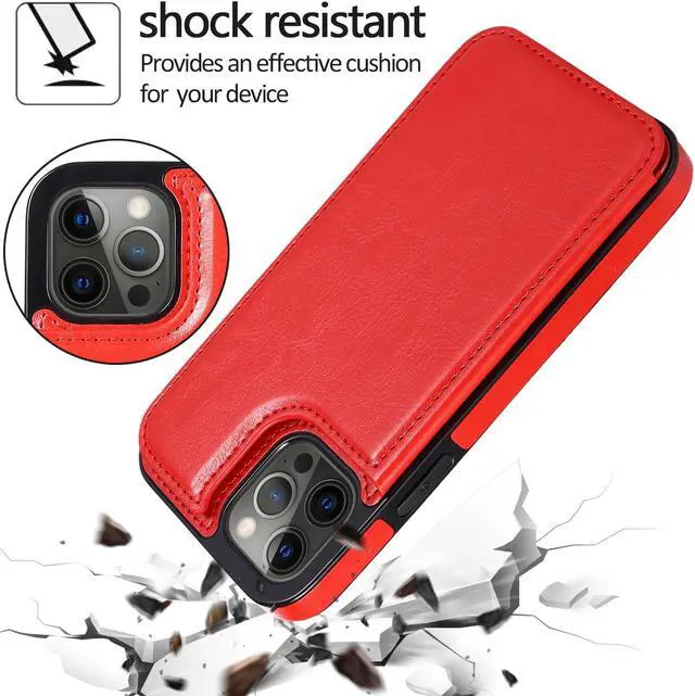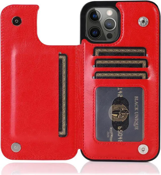 Features: Compatible with Apple iPhone 14 Pro Max. The smooth, high-grade synthetic leather just wraps around the back of the phone, making it a perfect option for anyone wishing to lend a prestige air to their brand new smartphone. Tight fit TPU and premium synthetic leather fusion design. Flip style 3 card compartment design. Secures money and cards of all types including credit cards, driver's license, and business cards. Unique design makes retrieving cards quick and easy. Magnetic closure folding stand allows you to hands-free watch your videos horizontally. Front bumpers raised slightly above your screen act to protect your screen when placed face down or dropped. Precise cutouts provide full access to your phone’ s features, ports and buttons.