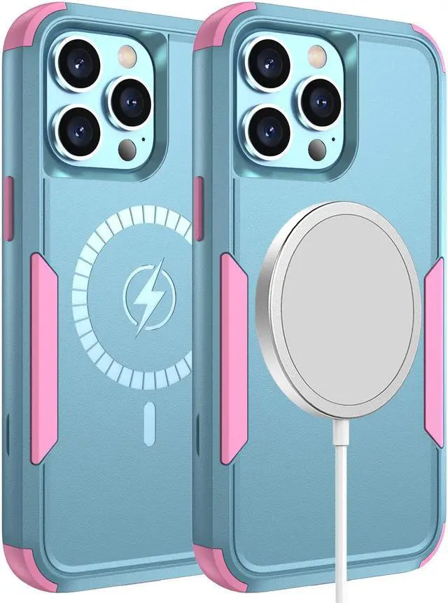MagSafe Compatible Military Grade TUFF Hybrid Armor Case for iPhone 14 Pro Max - Teal Pink