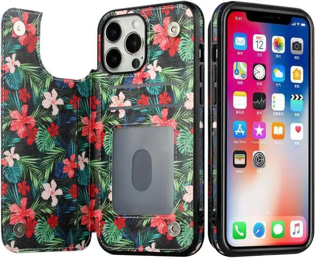 Features: Compatible with Apple iPhone 14 Pro Max. The smooth, high-grade synthetic leather just wraps around the back of the phone, making it a perfect option for anyone wishing to lend a prestige air to their brand new smartphone. Tight fit TPU and premium synthetic leather fusion design. Flip style 3 card compartment design. Secures money and cards of all types including credit cards, driver's license, and business cards. Unique design makes retrieving cards quick and easy. Magnetic closure folding stand allows you to hands-free watch your videos horizontally. Front bumpers raised slightly above your screen act to protect your screen when placed face down or dropped. Precise cutouts provide full access to your phone’ s features, ports and buttons.