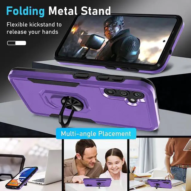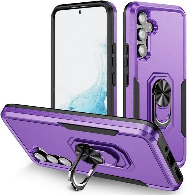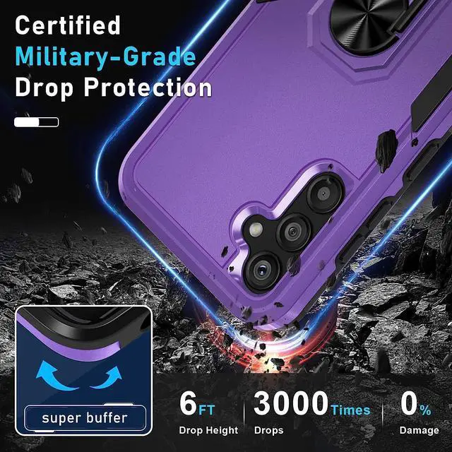 Features: Compatible with Samsung Galaxy A54 5G. Military Standard Shock Test MIL-STD 810G- 516.6 Protection. The case endured 26 drops (at 48in) on all 6 faces, 12 edges and 8 corners of the device and sustained zero damage to the appearance and internal hardware of the phone itself. Featuring a robust multi-layered design, the Tuff Case provides extreme protection for your device. This hard-wearing tough case safe-guards your phone against whatever life can throw at, keeping it secure at all times even in the most extreme of conditions. A soft rubberized TPU inner core tightly grips to your phone while absorbs shock and cushions the phone from drops and impact. Patented hybrid case with ridge polycarbonate hard shell for armor-like protection. The back of the case has a built-in extremely practical handle, Ring, which can be put on the finger to hold the phone more securely in your hand. Pull the ring out and have a handy viewing stand to comfortably watch your favorite show. Raised front bezel and camera opening prevent scratches to the screen and camera lens. Textured rubbery interior for impact resistant protection.