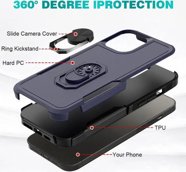 Features: Compatible with Apple iPhone 14 Plus. Extensively drop tested, so you can feel reassured that your device is well protected. Featuring a robust multi-layered design, the Tuff Case provides extreme protection for your device. This hard-wearing tough case safe-guards your phone against whatever life can throw at, keeping it secure at all times even in the most extreme of conditions. A soft rubberized TPU inner core tightly grips to your phone while absorbs shock and cushions the phone from drops and impact. Patented hybrid case with ridge polycarbonate hard shell for armor-like protection. The back of the case has a built-in extremely practical handle, Ring, which can be put on the finger to hold the phone more securely in your hand. It also allows you to attach the phone to a magnetic car holder. Pull the ring out and have a handy viewing stand to comfortably watch your favorite show. Raised front bezel and camera opening prevent scratches to the screen and camera lens. Textured rubbery interior for impact resistant protection. Intuitive button covers for a tactile experience. Precise cutouts provide full access to your phone’ s important features, ports and buttons.