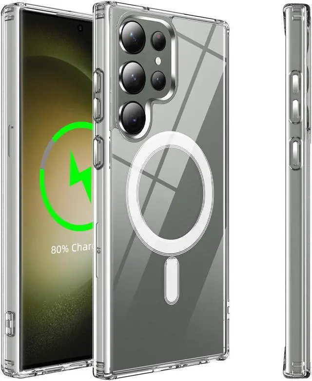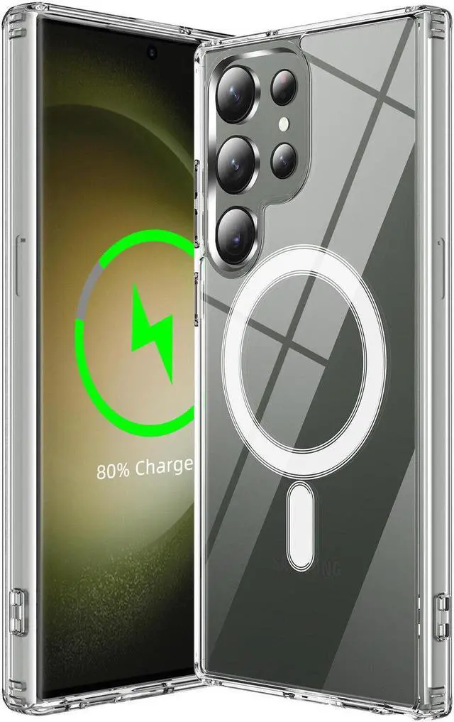 Features: Compatible with Samsung Galaxy S23 Ultra 5G. Extensively drop tested, so you can feel reassured that your device is well protected. Crystal clear case provides a slim fitting stylish design and reinforced corner shock protection against damage, keeping your device looking great at all time. Made from reinforced bonded thermopolyurethane and optical grade polycarbonate materials, which makes it flexible enough to absorb punishment but hard enough to resist potential damage. Designed to be slim, lightweight and strong - so you can be assured that this case will add virtually no extra bulk to your phone and will still fit in your pocket with ease. Raised bezels on the case protects your phone's screen and camera from scratches. Built-In MagSafe magnetic ring, and your phone is ready for the snap-on/snap-off satisfaction of MagSafe magnetic wireless charging, magnetic ring mounting, and a whole world of swappable magnetic accessories. Precisely cutouts to preserve full use of volume buttons, charger, camera, microphone, and all other ports.