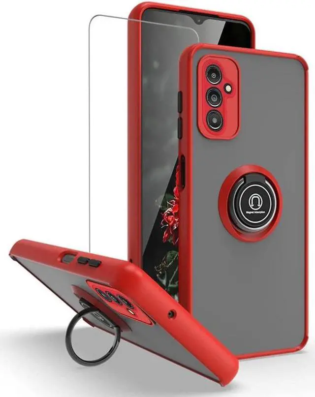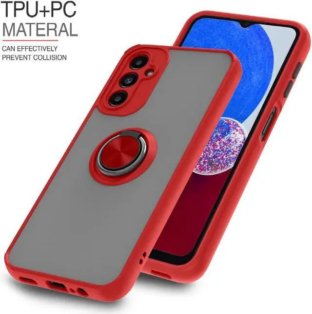 Features: Compatible with Samsung Galaxy A14 5G. Stylish, minimalist protection for your smartphone. Premium dual-material construction with polycarbonate backing and TPU perimeter creates a sleek profile without sacrificing protection. An adjustable integrated 180 and 360 degree gear rotating ring finger holder prevents your phone from accidental drops and slips. Lightweight frosted matte transparent polycarbonate backing with smooth silky surface protects against scratches and dings. Impact-absorbing TPU perimeter guards the device against bumps and drops. This case adds virtually no bulk to your device, so you can carry your phone in your pocket and use it as you normally would without any significant change. This case is effortlessly easy to install and looks great on your phone. Front bumpers raised slightly above your screen act to protect your screen when placed face down or dropped. Raised camera cut-out protects the lens from scratches when placing your phone on flat surface. Enjoy magnetic mount compatibility, as the ring holder also functions as a built-in metal plate. 9H hardness tempered glass screen protector prevents scratches without compromising sensitivity. Precisely cutouts to preserve full use of volume buttons, charger, camera, microphone, and all other ports.