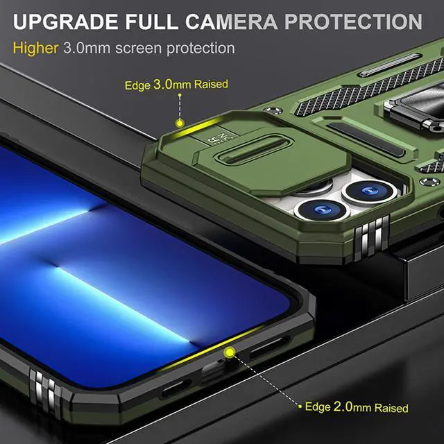 Features: Compatible with Apple iPhone 14 Pro. Military Standard Shock Test MIL-STD 810G- 516.6 Protection. The case endured 26 drops (at 48in) on all 6 faces, 12 edges and 8 corners of the device and sustained zero damage to the appearance and internal hardware of the phone itself. Made from a special strong and lightweight durable material, providing you with long lasting protection for your smartphone without making it cumbersome. The case features a handy finger loop that keeps your phone securely in hand while on your next adventure and even works as a viewing stand to watch movies. The ring grip folds flat and out of view if you do not want or need it. But if you do, simply pull the loop out, slip your finger through and you have an extra secure grip on your phone. Unique mix material hybrid design. This hard-wearing tough case safe-guards your phone against whatever life can throw your way, keeping your device secure at all times even in the most extreme of conditions. Raised front bezel and camera opening prevent scratches to the screen and camera lens.