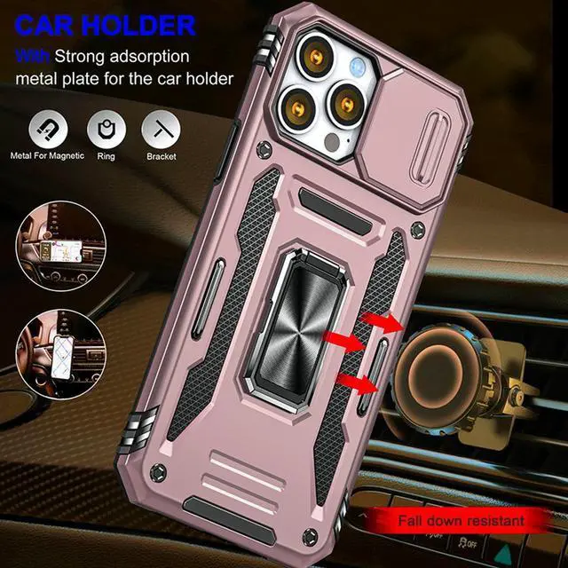 Privacy camera cover slides left or right for total protection. With fluid press buttons included in the design of this case, you can be sure to have a case that will protect your new device perfectly, without interrupting it's every day use. Enjoy magnetic mount compatibility, as the ring holder also functions as a built-in metal plate. Precise cutouts provide full access to your phone’ s important features, ports and button.