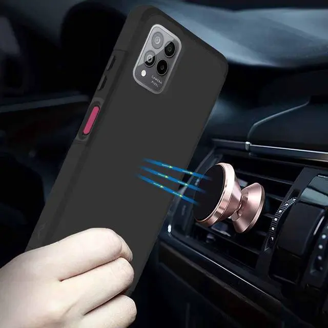 Layer 2: One-piece custom molded polycarbonate shell. 9 ft. drop protection to ensure safety from accident falls. The air cushion corners and bumper edges reduces impact force. Raised-edge bezel protects the screen and camera. Soft-touch finish. Scratch & discoloration resistant. Tactile buttons. Enjoy magnetic mount compatibility, as the ring holder also functions as a built-in metal plate. Precise cutouts provide full access to your phone’ s important features, ports and button.