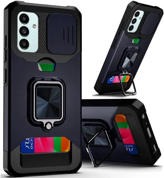 Made for the Samsung Galaxy A13 5G / 4G, the Military Grade All-In-One Ring Stand Card Case provides fantastic all-around protection and a finger loop to keep your phone in your hand, whether from accidental drops or attempted theft. Also featuring storage slot for your credit cards, ID and cash.