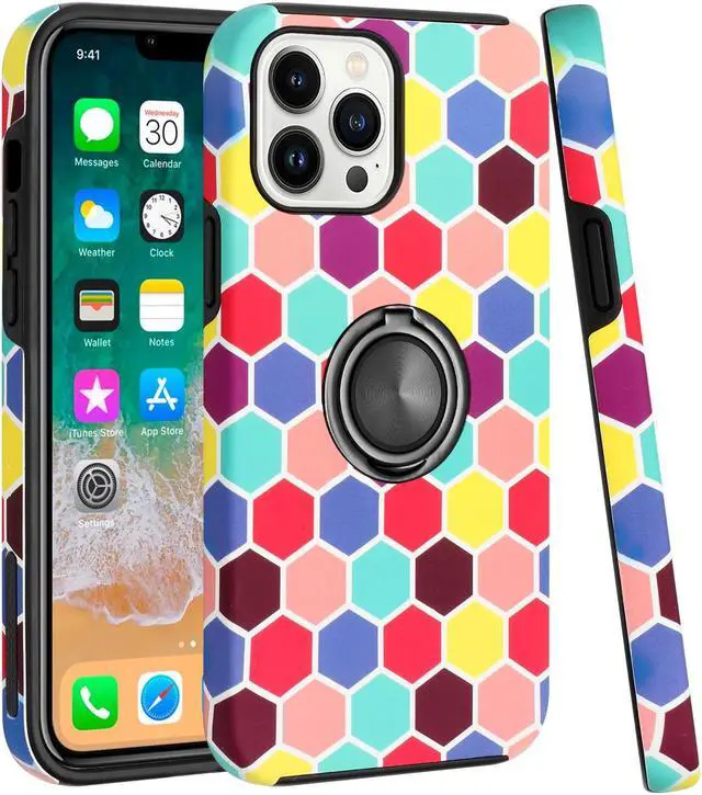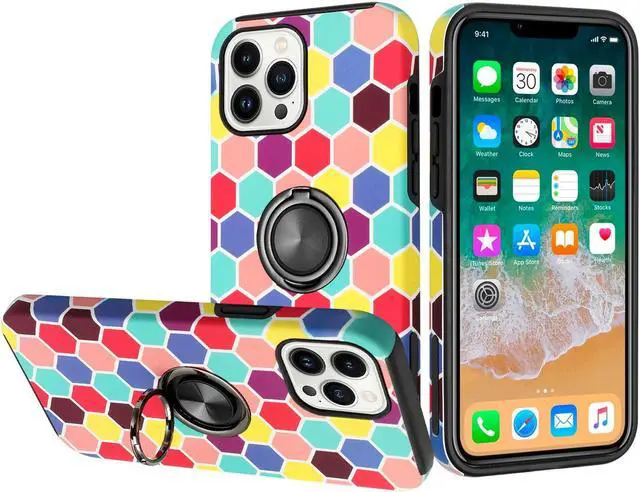 Features: Compatible with Apple iPhone 14. Made from reinforced bonded thermopolyurethane and high quality polycarbonate materials, which makes it flexible enough to absorb punishment but hard enough to resist potential damage. 360° rotating ring grip. Horizontal kickstand. Ultra-slim, lightweight and minimal design. Equipped with two-piece design, you can easily pop the case on and off with ease while still feeling ultimately protected. Get maximum safety and easy access to all buttons and ports from raised bezel edges, shock-absorbing corners, and a non-slip bumper grip. Enjoy magnetic mount compatibility, as the ring holder also functions as a built-in metal plate.