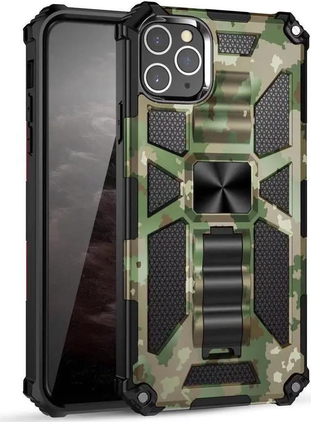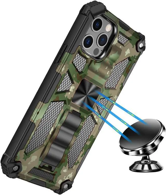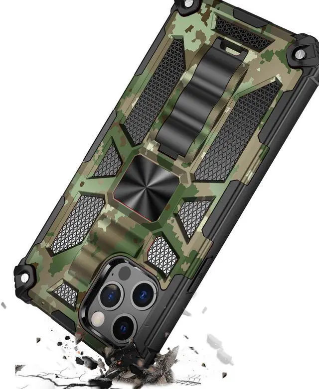 Features: Compatible with Apple iPhone 14 Pro. Extensively drop tested, so you can feel reassured that your device is well protected. Featuring a robust military design with premium rugged protection. Composite layers of shock-absorbing thermopolyurethane and ultra-resistant reinforced polycarbonate take all the punishment your daily travel and use can throw at your phone, including drop protection. Reinforced air cushion corners are designed to deflect shock force away from your phone and the corners are the most vulnerable areas of any phone or case. Located at the back of the case is a super-convenient flip-out kickstand. Folding completely flat when not in use, the kickstand can be called upon at will, allowing you to effortlessly watch media at any time and in any place. The sleek military styling and ruggedized construction of the case combines to create a case that perfectly compliments the phone's stunning design. Raised bezels on the case protects your screen and camera from scratches. Intuitive button covers for a tactile experience. Advanced Antimicrobial Technology - Special formula is built into the case keeping it clean, safe and free from harmful microbes. Enjoy magnetic mount compatibility, as the ring holder also functions as a built-in metal plate.