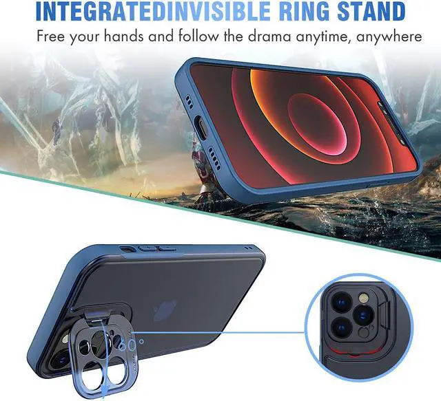 Have complete protection and functionality with this Camera Lens Stand Case for Apple iPhone 13 Pro Max. Featuring raised bezels to protect your front screen and a raised ring around your camera lens, your device is fully protected from scrapes, bumps and drops. Not only does the back ring protect your high-quality cameras lens, it also pulls out to be used as a stand to comfortably watch your favorite movies and shows.