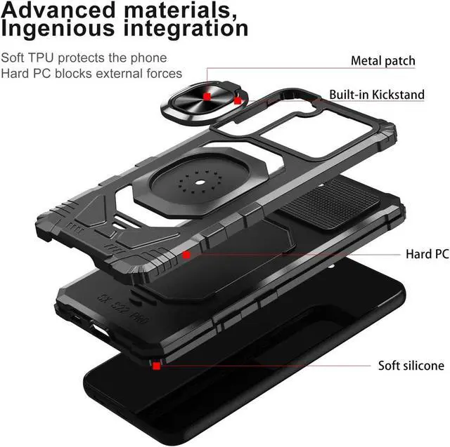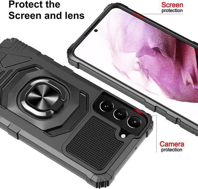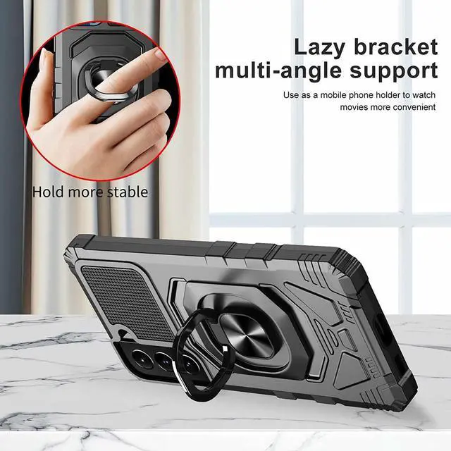 Features: Compatible with Samsung Galaxy S23 5G. Military Standard Shock Test MIL-STD 810G- 516.6 Protection. The case endured 26 drops (at 48in) on all 6 faces, 12 edges and 8 corners of the device and sustained zero damage to the appearance and internal hardware of the phone itself. Made from reinforced bonded thermopolyurethane and high quality polycarbonate materials, which makes it flexible enough to absorb punishment but hard enough to resist potential damage. Ring holder for extra drop protection - in more ways than one. The ring can also perform as a handy viewing stand. Just pull the loop out to its full extent and rest your phone at an angle on a flat surface. The loop will prop the phone up at a perfect viewing angle for watching media. Four corners with beveled exterior offering strong resistance to impact and bumps. Reinforced TPU bumper edges provide excellent protection where it's most needed. The selected materials used have a non-slip coating that provides you with extra grip for your phone, which minimizes the chance of dropping your device. Slim fitting design adds no very little bulk and fits perfectly in your pocket.