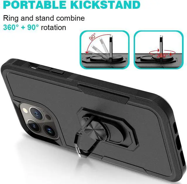 Features: Compatible with Apple iPhone 14 Pro Max. Extensively drop tested, so you can feel reassured that your device is well protected. Featuring a robust multi-layered design, the Tuff Case provides extreme protection for your device. This hard-wearing tough case safe-guards your phone against whatever life can throw at, keeping it secure at all times even in the most extreme of conditions. A soft rubberized TPU inner core tightly grips to your phone while absorbs shock and cushions the phone from drops and impact. Patented hybrid case with ridge polycarbonate hard shell for armor-like protection. The back of the case has a built-in extremely practical handle, Ring, which can be put on the finger to hold the phone more securely in your hand. It also allows you to attach the phone to a magnetic car holder. Pull the ring out and have a handy viewing stand to comfortably watch your favorite show. Raised front bezel and camera opening prevent scratches to the screen and camera lens. Textured rubbery interior for impact resistant protection. Intuitive button covers for a tactile experience. Precise cutouts provide full access to your phone’ s important features, ports and buttons.