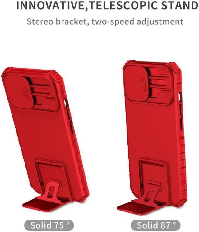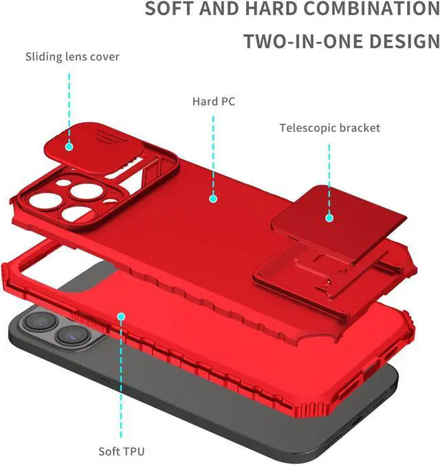 Features: Compatible with Apple iPhone 14 Pro. Extensively drop tested, so you can feel reassured that your device is well protected. Two layered case protects from bumps, scrapes and drops. Made from robust and hard-wearing materials for long-lasting protection. Privacy cover slides in front of camera when not in use. Your phone's camera can be hacked - get protected. Portable flip-out stand that pulls out to give the perfect viewing angle for videos and pictures. Non-slip coating with reinforced corners provide excellent protection where it's most needed. Etched grips at the sides aids handling. Raised bezels lift screen and camera off flat surfaces. Intuitive button covers for a tactile experience. Cut-outs for the main ports and features of the phone.