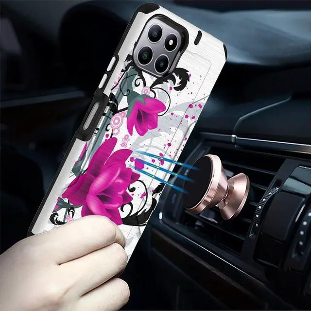 Layer 2: One-piece custom molded polycarbonate shell. The air cushion corners reduces impact force. The interior adopts a honeycomb pattern design that absorbs shocks and impacts, also help dissipate heat to prevent overheating. Unique mix material hybrid design provides excellent shock absorption and scratch protection. Raised bezels on the case protects your screen and camera from scratches. Textured grid finishing for improved grip. Enjoy magnetic mount compatibility with the built-in metal plate. Precise cutouts provide full access to your phone’ s important features, ports and buttons.