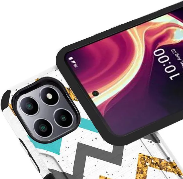 Simplicity comes in all shapes and sizes as seen with the newly designed Brushed Metal Texture Hybrid Armor Case for the Celero 5G Plus. Is build of hard polycarbonate and softer TPU accents add style that’ s functional. The brushed coated polycarbonate frame add style with solid feedback that’ s obvious at the touch.