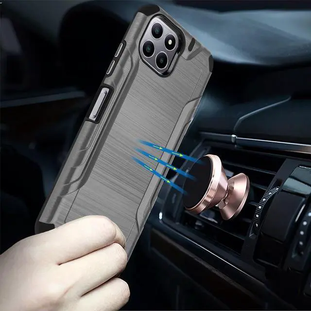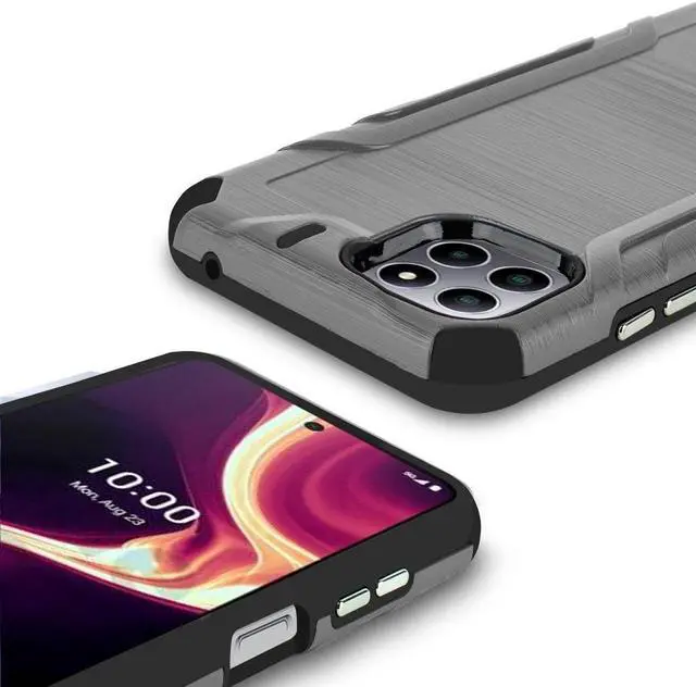 Simplicity comes in all shapes and sizes as seen with the newly designed Brushed Metal Texture Hybrid Armor Case for the Celero 5G Plus. Is build of hard polycarbonate and softer TPU accents add style that’ s functional. The brushed coated polycarbonate frame add style with solid feedback that’ s obvious at the touch.