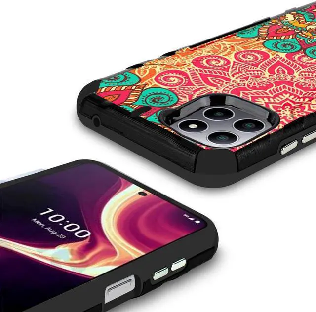 Simplicity comes in all shapes and sizes as seen with the newly designed Brushed Metal Texture Hybrid Armor Case for the Celero 5G Plus. Is build of hard polycarbonate and softer TPU accents add style that’ s functional. The brushed coated polycarbonate frame add style with solid feedback that’ s obvious at the touch.