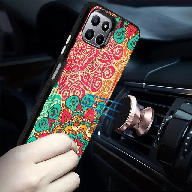 Layer 2: One-piece custom molded polycarbonate shell. The air cushion corners reduces impact force. The interior adopts a honeycomb pattern design that absorbs shocks and impacts, also help dissipate heat to prevent overheating. Unique mix material hybrid design provides excellent shock absorption and scratch protection. Raised bezels on the case protects your screen and camera from scratches. Textured grid finishing for improved grip. Enjoy magnetic mount compatibility with the built-in metal plate. Precise cutouts provide full access to your phone’ s important features, ports and buttons.