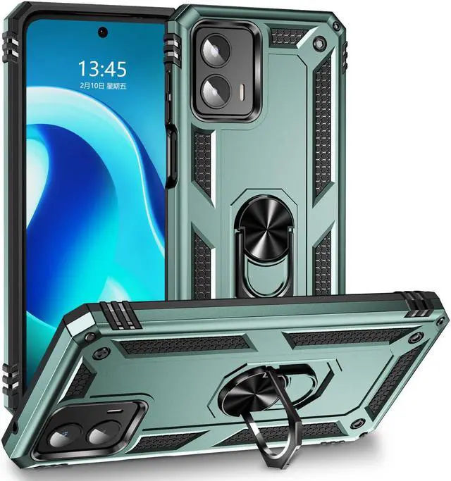 Features: Compatible with Motorola Moto G 5G 2023. Military Standard Shock Test MIL-STD 810G- 516.6 Protection. The case endured 26 drops (at 48in) on all 6 faces, 12 edges and 8 corners of the device and sustained zero damage to the appearance and internal hardware of the phone itself. Made from a special strong and lightweight durable material, providing you with long lasting protection for your smartphone without making it cumbersome. Ring holder for extra drop protection - in more ways than one. The built-it ring features a 180 & 360 degree rotating design to ensure a comfortable grip at any angle. Flip the ring out and it doubles as a kickstand to take your binge-watching experience to the next level. Unique mix material hybrid design.