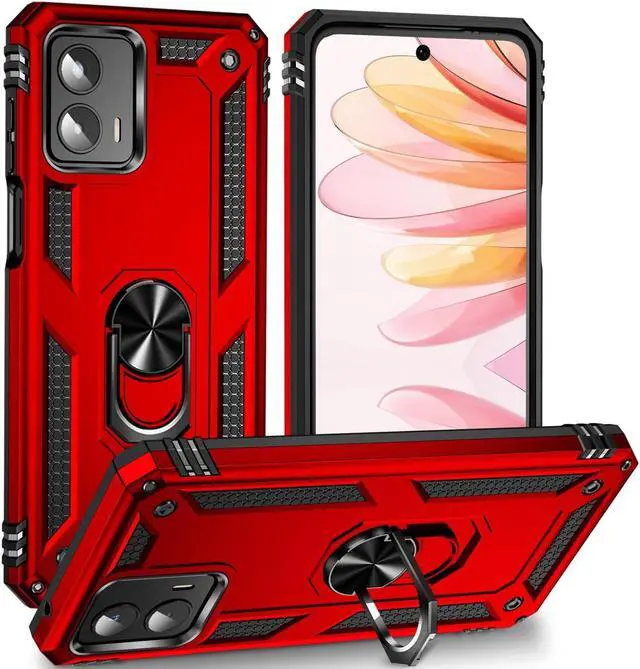 Features: Compatible with Motorola Moto G 5G 2023. Military Standard Shock Test MIL-STD 810G- 516.6 Protection. The case endured 26 drops (at 48in) on all 6 faces, 12 edges and 8 corners of the device and sustained zero damage to the appearance and internal hardware of the phone itself. Made from a special strong and lightweight durable material, providing you with long lasting protection for your smartphone without making it cumbersome. Ring holder for extra drop protection - in more ways than one. The built-it ring features a 180 & 360 degree rotating design to ensure a comfortable grip at any angle. Flip the ring out and it doubles as a kickstand to take your binge-watching experience to the next level. Unique mix material hybrid design.