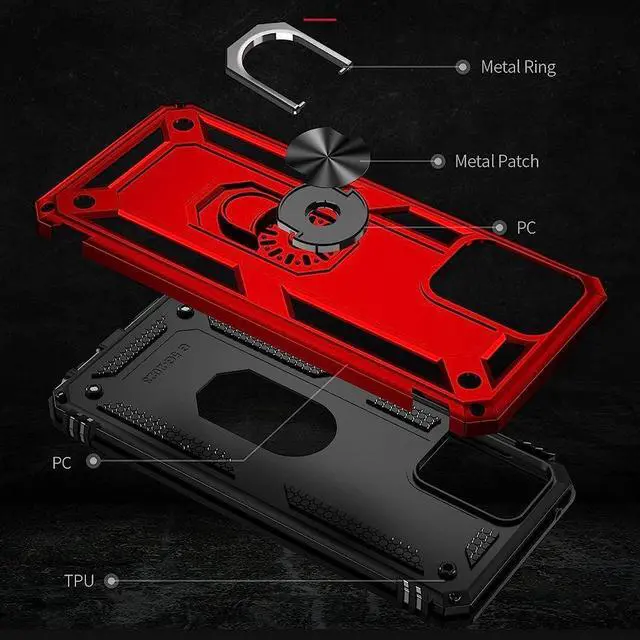 Layer 2: One-piece custom molded polycarbonate shell. Featuring a robust multi-layered design, the case provides extreme protection for your smartphone. This hard-wearing tough case safe-guards your phone against whatever life can throw your way, keeping your device secure at all times even in the most extreme of conditions. Raised front bezel and camera opening prevent scratches to the screen and camera lens. With fluid press buttons included in the design of this case, you can be sure to have a case that will protect your new device perfectly, without interrupting it's every day use. Enjoy magnetic mount compatibility, as the ring holder also functions as a built-in metal plate. Precise cutouts provide full access to your phone’ s important features, ports and button.