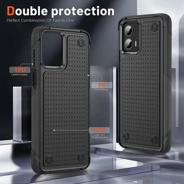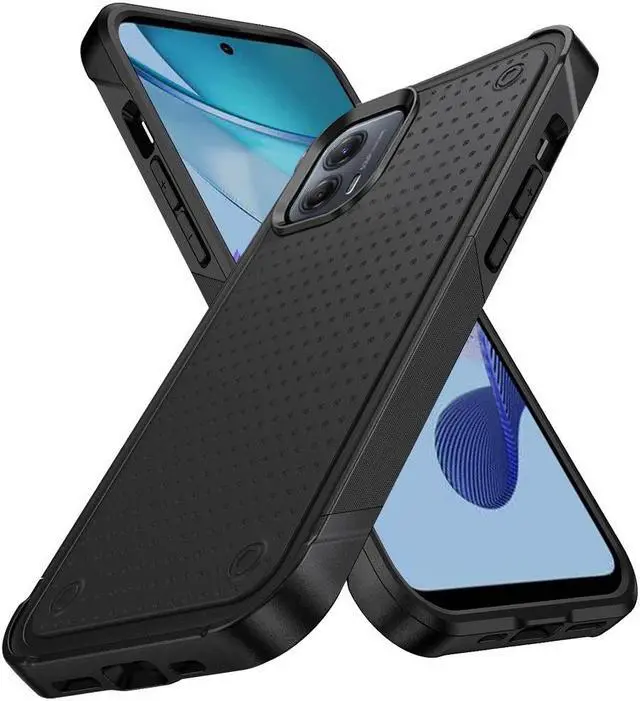 For unbeatable protection, the dual layer TUFF Dot Hybrid Cover provides supreme defense against drops and abrasions. A soft rubberized TPU interior complete encases the Motorola Moto G 5G 2023 for shock adsorption on all sides while hardened dotted polycarbonate shell attach to the back for a sleek look.