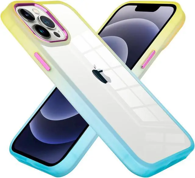 Features: Compatible with Apple iPhone 14 Pro Max. Replicating iPhone’ s hard back texture, this case brings a fabulous touch feeling. Reinforced the hard explosion-proof back panel and flexible TPU edge bumper to increase shock absorption and disperse impact. Gradient color bumper design. Crystal clear transparency flaunts original phone design. Raised lip helps protect the screen and camera against scratches from direct surface contact. Anti-yellow 100% clear case. It withstands the test of time and has breathtakingly high resistance to UV rays, sweat and oxidation of cosmetics. Non-slip coating for extra grip. Antimicrobial case protection. Slim, minimalist design grants full access to all ports and features. Supports wireless charging with most Qi-certified devices.