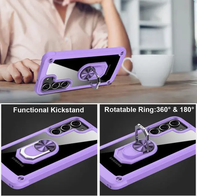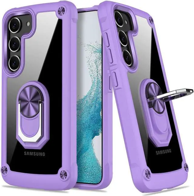 Features: Compatible with Samsung Galaxy S23 5G. Extensively drop tested, so you can feel reassured that your device is well protected. Crystal clear case provides a slim fitting stylish design and reinforced corner shock protection against damage, keeping your device looking great at all time. Made from reinforced bonded thermopolyurethane and optical grade polycarbonate materials, which makes it flexible enough to absorb punishment but hard enough to resist potential damage. The back of the case has a built-in extremely practical handle, Ring, which can be put on the finger to hold the phone more securely in your hand. Pull the ring out and have a handy viewing stand to comfortably watch your favorite show. Designed to be slim, lightweight and strong - so you can be assured that this case will add virtually no extra bulk to your phone and will still fit in your pocket with ease. Raised bezels on the case protects your phone's screen and camera from scratches. independent metal buttons for an easy, conspicuous press. Enjoy magnetic mount compatibility, as the ring holder also functions as a built-in metal plate.