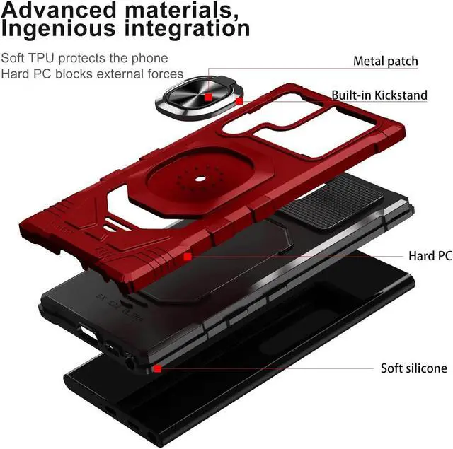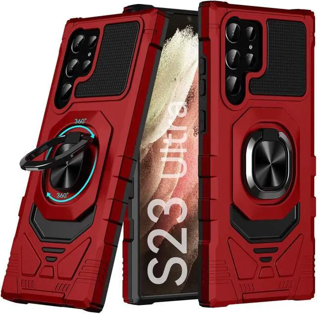 Features: Compatible with Samsung Galaxy S23 Ultra 5G. Extensively drop tested, so you can feel reassured that your device is well protected. Made from reinforced bonded thermopolyurethane and high quality polycarbonate materials, which makes it flexible enough to absorb punishment but hard enough to resist potential damage. Ring holder for extra drop protection - in more ways than one. The ring holder can also perform as a handy viewing stand. Just pull the loop out to its full extent and rest your phone at an angle on a flat surface. The loop will prop the phone up at a perfect viewing angle for watching media. Four corners with beveled exterior offering strong resistance to impact and bumps. Reinforced TPU bumper edges provide excellent protection where it's most needed. The selected materials used have a non-slip coating that provides you with extra grip for your phone, which minimizes the chance of dropping your device. Slim fitting design adds no very little bulk and fits perfectly in your pocket. Raised bezels on the case protects your screen and camera from scratches and dirt. Signature lip designed to protect your device and camera lens from flat falls.