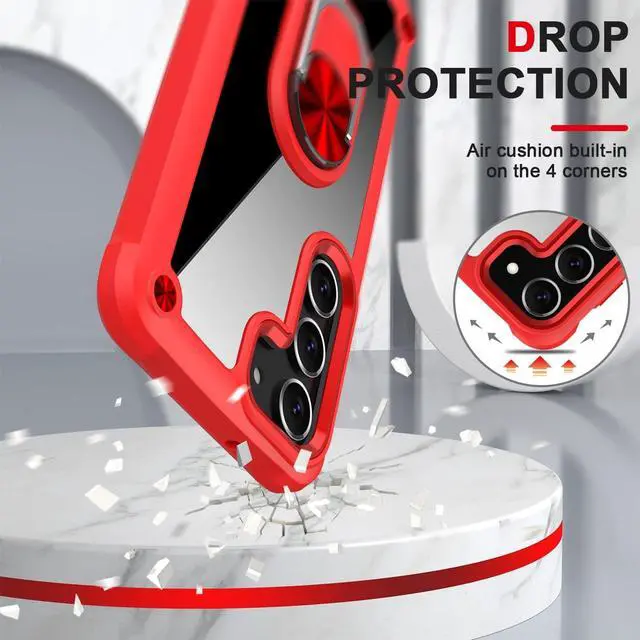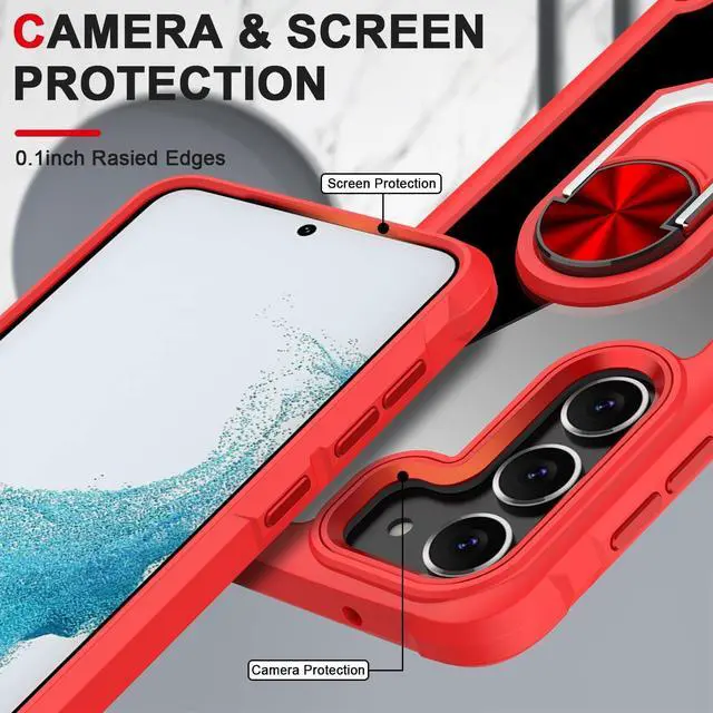 Features: Compatible with Samsung Galaxy S23 5G. Extensively drop tested, so you can feel reassured that your device is well protected. Crystal clear case provides a slim fitting stylish design and reinforced corner shock protection against damage, keeping your device looking great at all time. Made from reinforced bonded thermopolyurethane and optical grade polycarbonate materials, which makes it flexible enough to absorb punishment but hard enough to resist potential damage. The back of the case has a built-in extremely practical handle, Ring, which can be put on the finger to hold the phone more securely in your hand. Pull the ring out and have a handy viewing stand to comfortably watch your favorite show. Designed to be slim, lightweight and strong - so you can be assured that this case will add virtually no extra bulk to your phone and will still fit in your pocket with ease. Raised bezels on the case protects your phone's screen and camera from scratches. independent metal buttons for an easy, conspicuous press. Enjoy magnetic mount compatibility, as the ring holder also functions as a built-in metal plate.