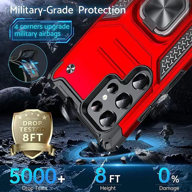 Features: Compatible with Samsung Galaxy S23 Ultra 5G. Extensively drop tested, so you can feel reassured that your device is well protected. Made from reinforced bonded thermopolyurethane and high quality polycarbonate materials, which makes it flexible enough to absorb punishment but hard enough to resist potential damage. Finger loop for extra drop protection - in more ways than one. The loop can also perform as a handy viewing stand. Just pull the loop out to its full extent and rest your phone at an angle on a flat surface. The loop will prop the phone up at a perfect viewing angle for watching media. Four corners with beveled exterior and hollow interior offer strong resistance to impact and bumps. Reinforced TPU bumper edges provide excellent protection where it's most needed. The selected materials used have a non-slip coating that provides you with extra grip for your phone, which minimizes the chance of dropping your device. Slim fitting design adds no very little bulk and fits perfectly in your pocket. Raised bezels on the case protects your screen and camera from scratches and dirt. Signature lip designed to protect your device and camera lens from flat falls.