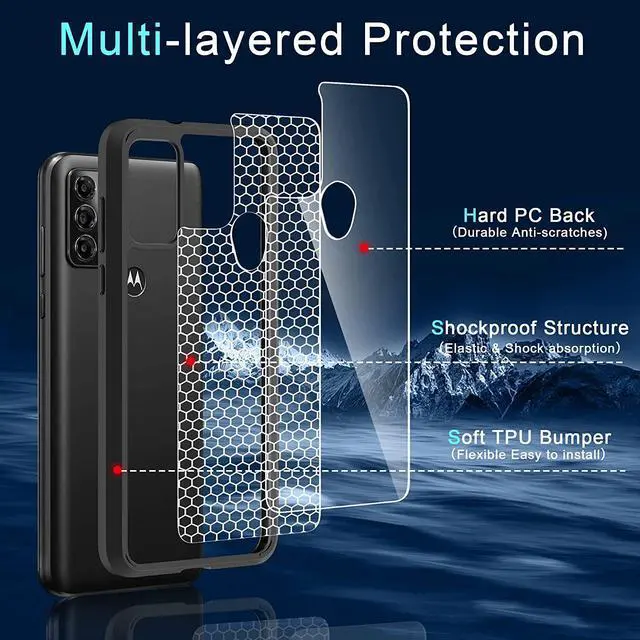 Features: Compatible with Motorola Moto G Play 2023. Made from reinforced bonded thermopolyurethane and high quality optical grade polycarbonate materials, which makes it flexible enough to absorb punishment but hard enough to resist potential damage. Reinforced corners provide excellent protection where it's most needed. The selected materials used have a non-slip coating that provides you with extra grip for your phone, which minimizes the chance of dropping your device. Slim fitting design adds no very little bulk and fits perfectly in your pocket. Raised bezels on the case protects your screen and camera from scratches and dirt. Embossed buttons for an easy, conspicuous press. Equipped with one-piece platform design, you can easily pop the case on and off with ease while still feeling ultimately protected. Cut-outs for all the features and ports so you'll never need to take the case off.