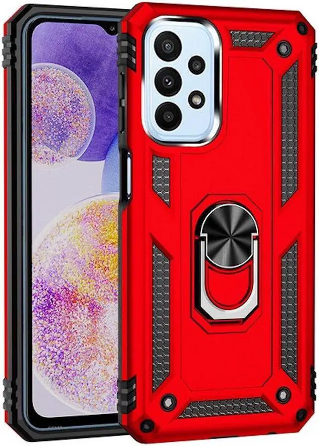 Features: Compatible with Samsung Galaxy A23 5G. Military Standard Shock Test MIL-STD 810G- 516.6 Protection. The case endured 26 drops (at 48in) on all 6 faces, 12 edges and 8 corners of the device and sustained zero damage to the appearance and internal hardware of the phone itself. Made from a special strong and lightweight durable material, providing you with long lasting protection for your smartphone without making it cumbersome. The Finger Loop Armor gets its name from an ingenious finger loop system on the rear of the case. This loop folds flat and out of view if you do not want or need it. But if you do, simply pull the loop out, slip your finger through and you have an extra secure grip on your phone. Another benefit of the Finger Loop Armor is that the loop can also perform as a handy viewing stand. Just pull the loop out to its full extent and rest your phone at an angle on a flat surface. Unique mix material hybrid design.